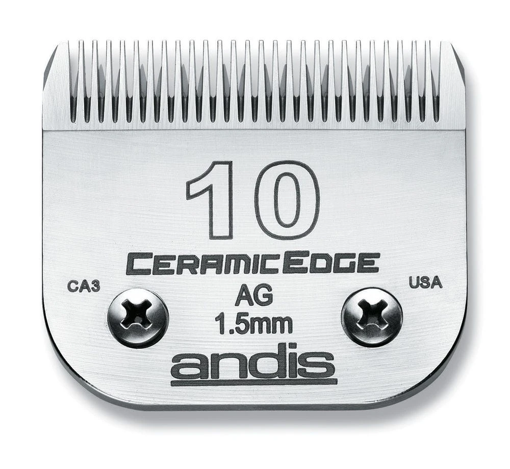 Size 10 CeramicEdge Blade has a 1/16″ (1.5 mm) blade cut. Use for faces on poodles, terriers, and cocker spaniels and for most cat clipping. Also good for sanitary trims.