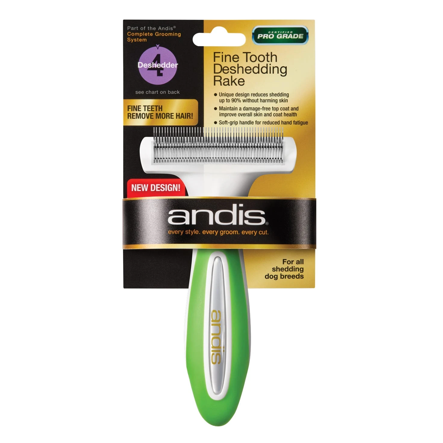 Andis Premium Fine Tooth Deshedding Tool safely and easily removes undercoat and loose hair with ease. Featuring quality construction and a soft-grip handle, these ergonomically designed premium tools offer all-day salon use with less hand fatigue.