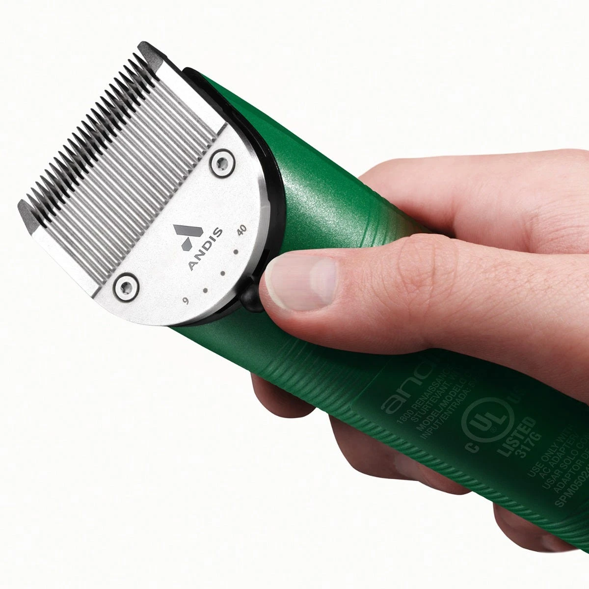 Built for the professional groomer with versatility in mind, the Andis® Vida Adjustable Blade Clipper features a smaller, sleak profile for a better fit in hand, a multi-cut 5 size range adjustable blade, a powerful rotary motor, and a strong Li-Ion battery. Lightweight tapered adjustable blade adjusts to sizes 9, 10, 15, 30, 40. Faster clipping because you won’t have to stop to change blades- you’ve got 5 on your clipper! This clipper handles all coat types and is perfect for those hard to reach areas. Includes 6 snap on combs for extended versatility and USB-C charging for convenience. 5,500 strokes per minute provide the heavy-duty cutting power Pros need! 90 minute run time and a 60 minute recharge time.