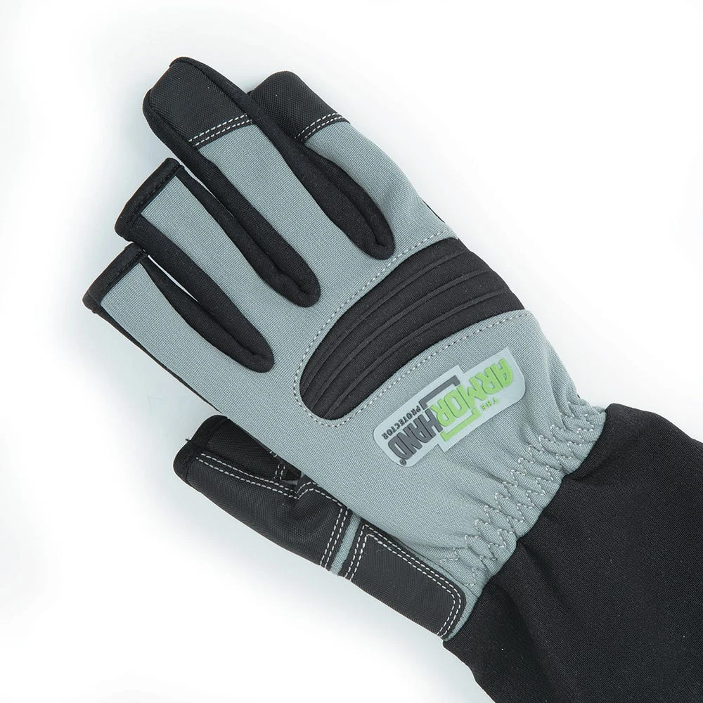 Injuries from animals are painful, expensive, and traumatic. Developed by Dr. Laura Catena, DVM, the ArmOR Hand® Procedure-Palpation Gloves® are bite resistant and provide superior dexterity and grip, allowing proper and safe animal restraint. Made from washable 100% DuPont knitted material with stretch cordura, with elbow length protection. Premium knitted material protection allows you to independently move all 10 digits for greater flexibility and dexterity. Three exposed fingertips for trimming nails, grooming, administering injections/vaccines, applying ear medications, palpation, placing basket muzzles, etc.