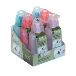 Cruising Companion® Handi-Drinks keep pets hydrated on the go while preventing leaks, spills, and backwash contamination! The perfect way to give pets fresh water while traveling. Handi-Drink Mini keeps smaller pets supplied with fresh water on the go. Ideal for walks, hikes, car rides, camping, and trips to the beach. Leak-proof water bottle features an attached drinking tray that folds up for easy storage. Includes a belt clip and carrying strap. Fully stocked Displays of each size come with six; two of each color.