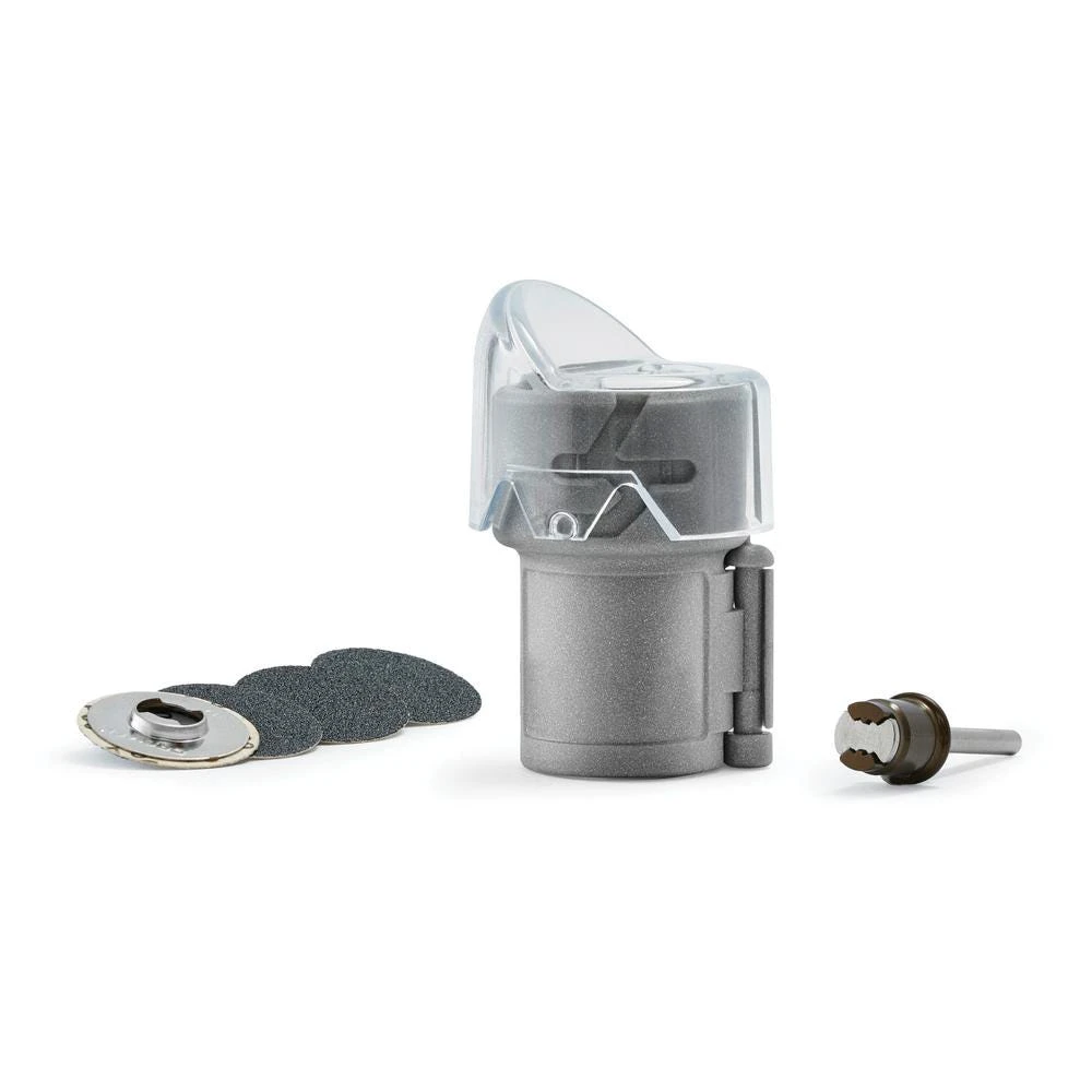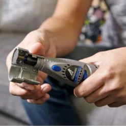 Dremel 6 Pc Pet Grooming Attachment Kit is a 45 degree paw guide that assures the correct angle for the perfect nail finish. Scissor- and guillotine-type clippers apply pressure and pinch the nail, which can be uncomfortable for pets and cause stress. The Dremel pet grooming nail guard attachment allows you to quickly, easily and gently trim pet’s nails using the Dremel Variable Speed Nail Grinder. Nail dust and fur guard for cleanliness and ensures safety. The clear cap allows easy viewing and is adjustable for use on other Dremel rotary tools. Features a simple hinged design so the housing can be opened for easy cleaning and assembly.