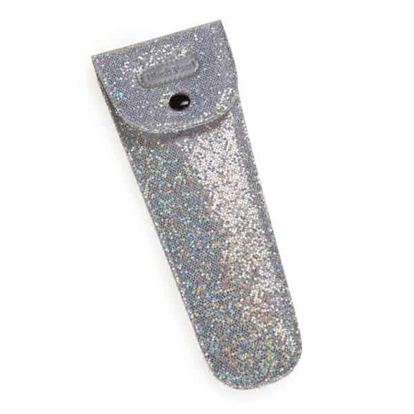 sparkling finished sheath with a snap closure.
