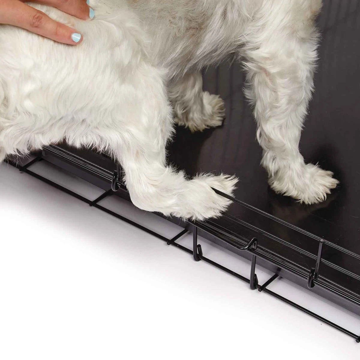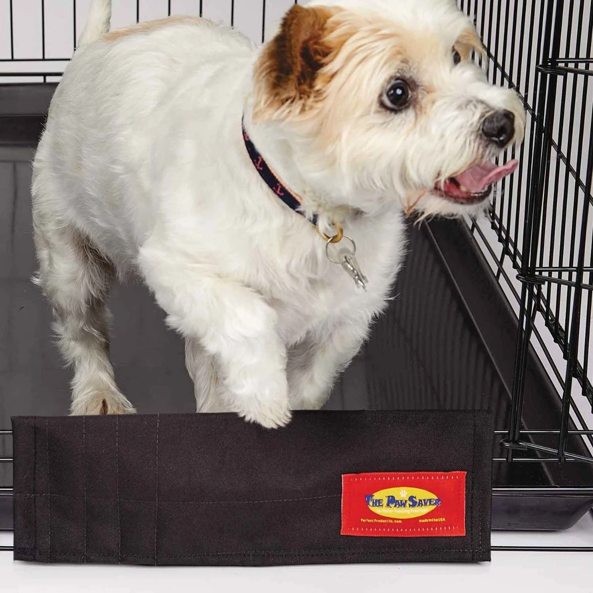 Protect paws with the The Paw Saver from Grooming Safety by Jessica. The Paw Saver is the original heavy duty paw protector that covers the gaps in wire crate door openings to prevent common injuries to pet’s paws while reducing kennel/crating fears. Paws won’t get caught between wires with The Paw Saver! Heavy duty durable nylon fabric with hook and loop fastening for security, safety, and injury elimination. Repels hair, wipe clean/disinfect, or hand wash as needed. Cut to fit and can be easily installed, removed, and reinstalled onto any wire crate.