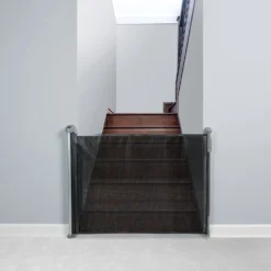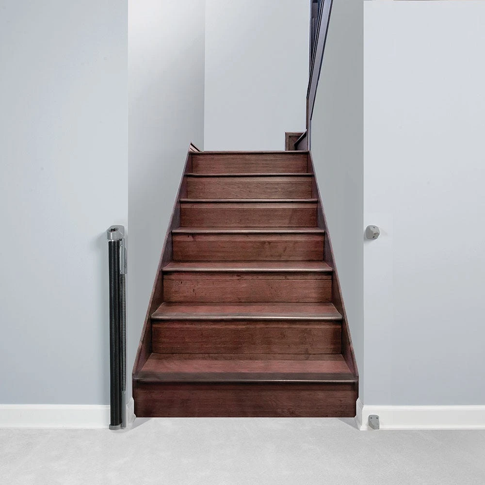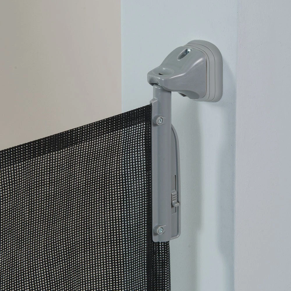The Retractable Safeway Wall Mounted Gate is the simplest gate of its kind to operate on the market. Flexible yet safe, the mesh barrier retracts out of the way when gate is not in use. Super quiet recoil won’t wake sleeping pets. No tripping hazard, so gate is perfect for both top and bottom of stairs. KidCo gates are constructed of heavy duty, tubular steel with robotic welding and form fitting. All plastic parts are nylon based with fiberglass reinforcement to ensure strength, durability and longevity!