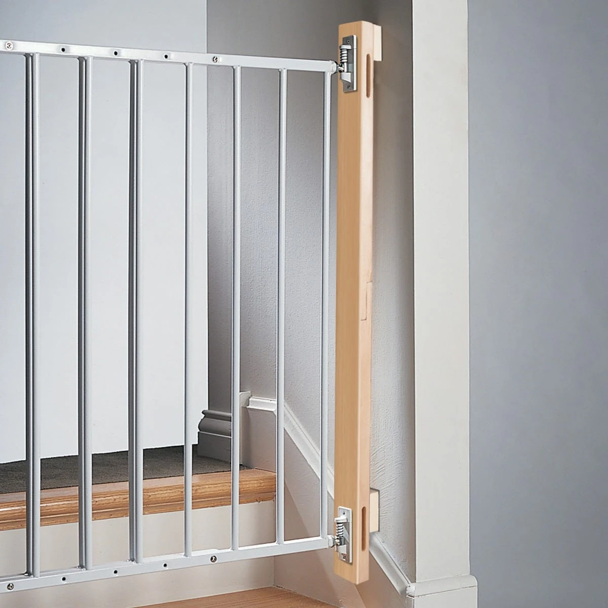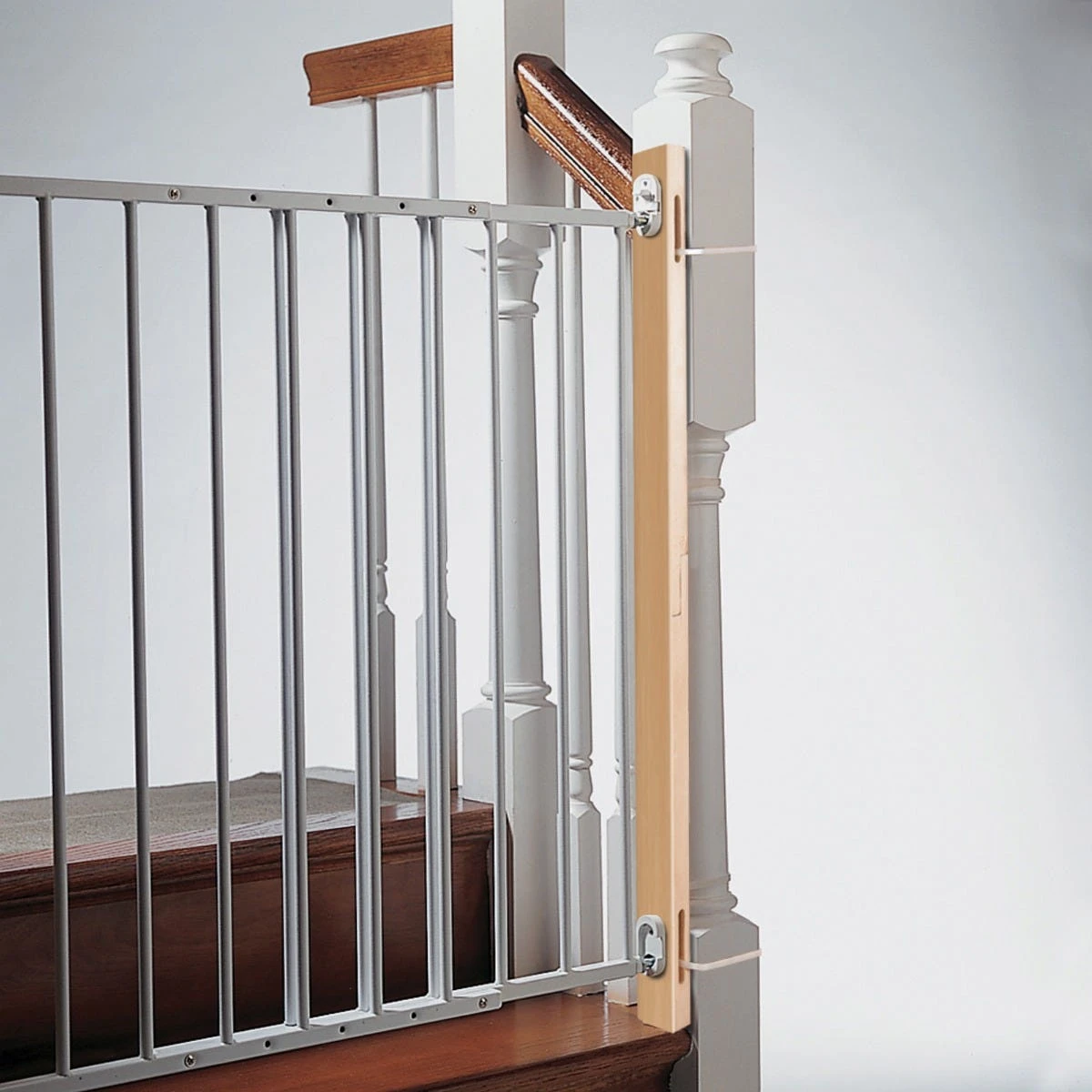 KidCo Universal Gate Installation Kit makes installation easy! No drilling into stair posts! KidCo has assembled the materials and fasteners necessary to properly install any child or pet safety gate to wood banisters, hollow wall (drywall) or wrought iron. The KidCo Universal Gate Installation Kit will work with any manufactures gates and can save several trips to the lumber yard and hardware store. When mounting the gates to unusual surfaces such as brick or concrete, KidCo recommends that you consult a hardware professional. One kit is required for each side of the gate that is not being mounted into a solid vertical wood surface and only the most basic tools are needed to assemble any good child safety gate.