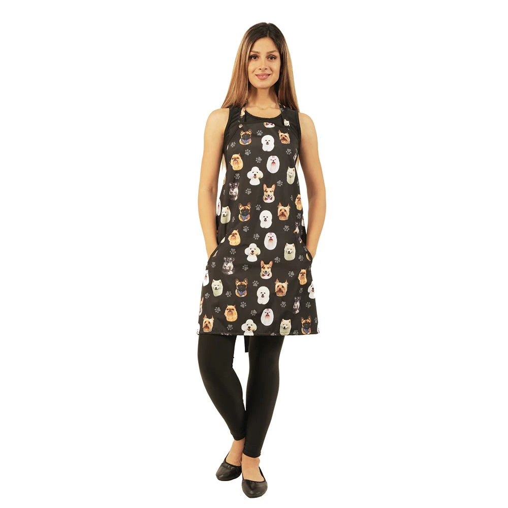 Waterproof LadyBird Line Waterproof Dog Breeds Apron feature an attractive printed dog breed design and an inside mesh lining for comfort. Bleach resistant, hair repellent, adjustable neck band, black trim, 2 front pockets, and waist tie belt. One size fits most.