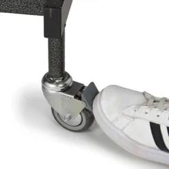 - Wheels lock in place to keep the table stationary