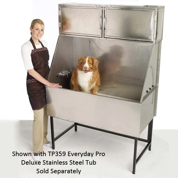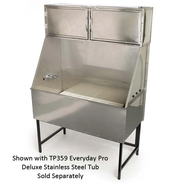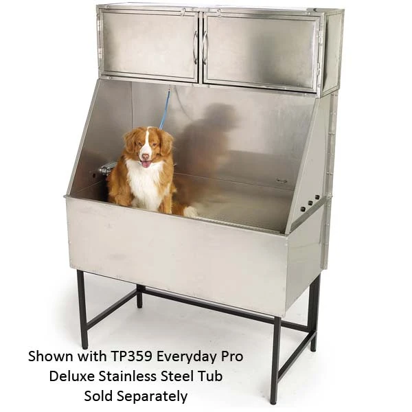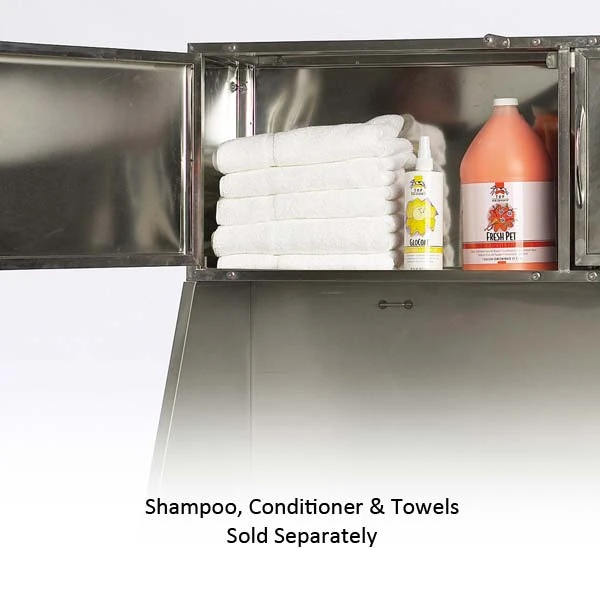 steel as the tub - Holds 6-8 gallons of pet shampoo or other grooming