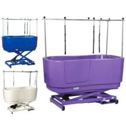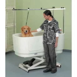 Includes: 3¼”D, four shampoo bottle holder, overhead grooming arm, 2 grooming loops, drain and 6½ foot drainage hose.