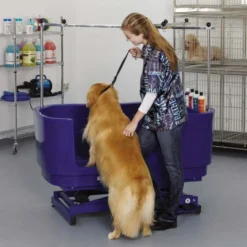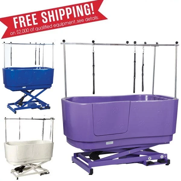 Constructed of sturdy, high-density polypropylene, our Master Equipment™ PolyPro Electric Lift Grooming Tubs are rust- and tarnish-resistant. This back-saving electric tub has a foot-operated lift to elevate wet, heavy pets during bathing. Perfect for your dog washing station.