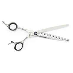 Now available in Left-Hand styles.Hand-crafted by highly skilled and experienced craftspeople, Master Grooming Prestige Dog Grooming Lefty Thinning Shears by Sensei are a delight to hold, and amazing to use. Groom faster and more efficiently with less fatigue. Convex Edges for the smoothest most effortless cuts. Patent-pending Zero Gravity Tension System suspends the moving blade between tow counter springs to achieve a truly weightless cutting feel. Sensei Cryo-Tempered steel is subject to extreme low temperature annealing which extends the wear resistance scientifically by 40%. They stay sharp longer than other brands!