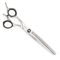 Now available in Left-Hand styles.Hand-crafted by highly skilled and experienced craftspeople, Master Grooming Prestige Dog Grooming Lefty Thinning Shears by Sensei are a delight to hold, and amazing to use. Groom faster and more efficiently with less fatigue. Convex Edges for the smoothest most effortless cuts. Patent-pending Zero Gravity Tension System suspends the moving blade between tow counter springs to achieve a truly weightless cutting feel. Sensei Cryo-Tempered steel is subject to extreme low temperature annealing which extends the wear resistance scientifically by 40%. They stay sharp longer than other brands!