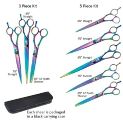 The 3-Piece Kit includes one each of the 7½” Straight Shears, 8½” Straight Shears, and one 6½” 42-Tooth Thinning Shears.