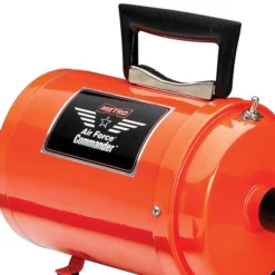 Powerful Metro Air Force® Commander® 2-Speed Pet Dryer uses a stream of air warmed by flowing over the motor to effectively blow water from the dog’s coat to cut drying time in half. The sturdy all-steel construction is a compact 12″ x 7″ x 7″ size and includes: