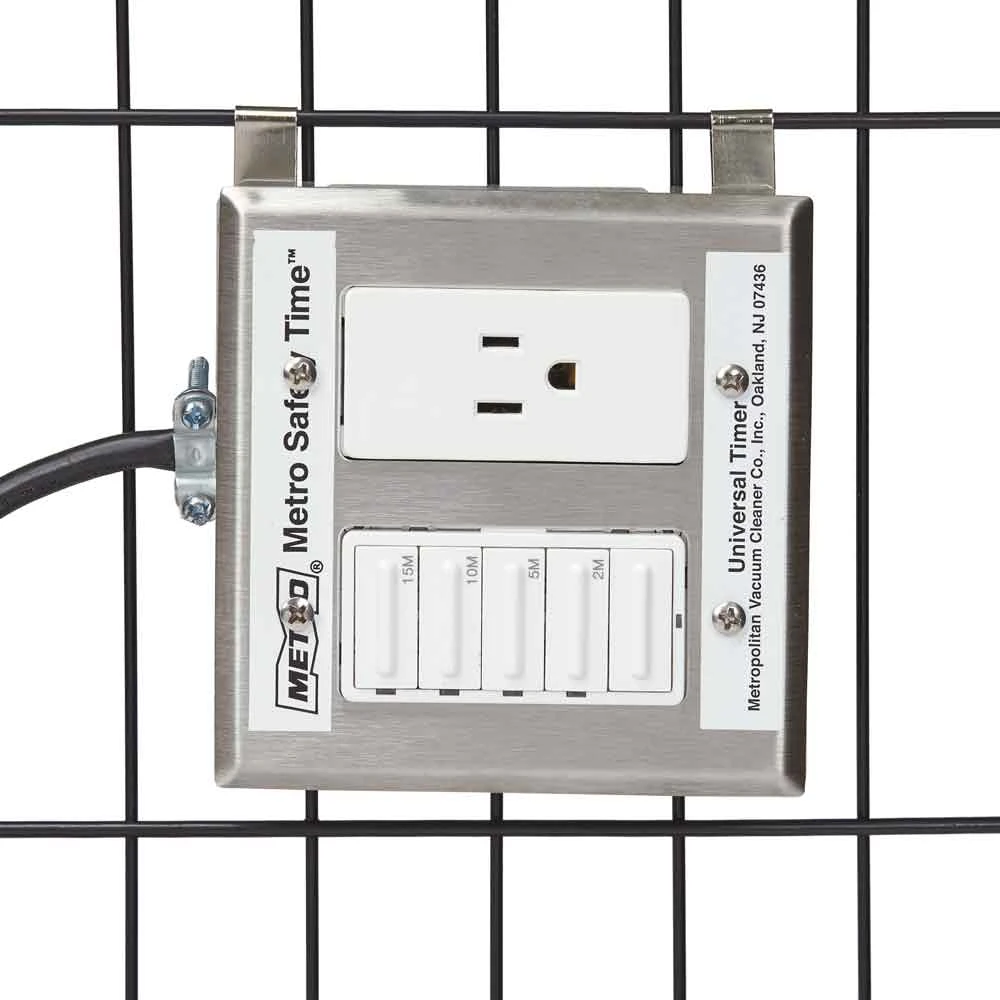 The Metro Safety Time Universal Timer is specifically designed to protect pets from accidental over-drying. For use when cage drying pets. Features 4 timer settings for 2, 5, 10, and 15 minutes and a reset button, with a convenient 12′ cord that also serves to extend the reach of your dryers! Features the high quality materials and build quality that MetroVac is known for!