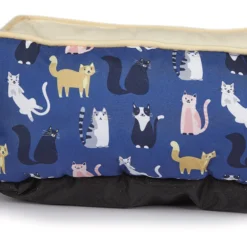 Slumber Pet® All Cats Cuddler Bed is an ultra-cozy bumper-style bolster bed with dense cushioning and cuddly soft velour lining for ultimate comfort. Cats will love to cuddle up against the bumpers and the cozy polyfil is soft and comfy. Adorable kitties pattern on a blue background looks great with any decor. Dotted non-slip fabric bottom helps keep bed in place.