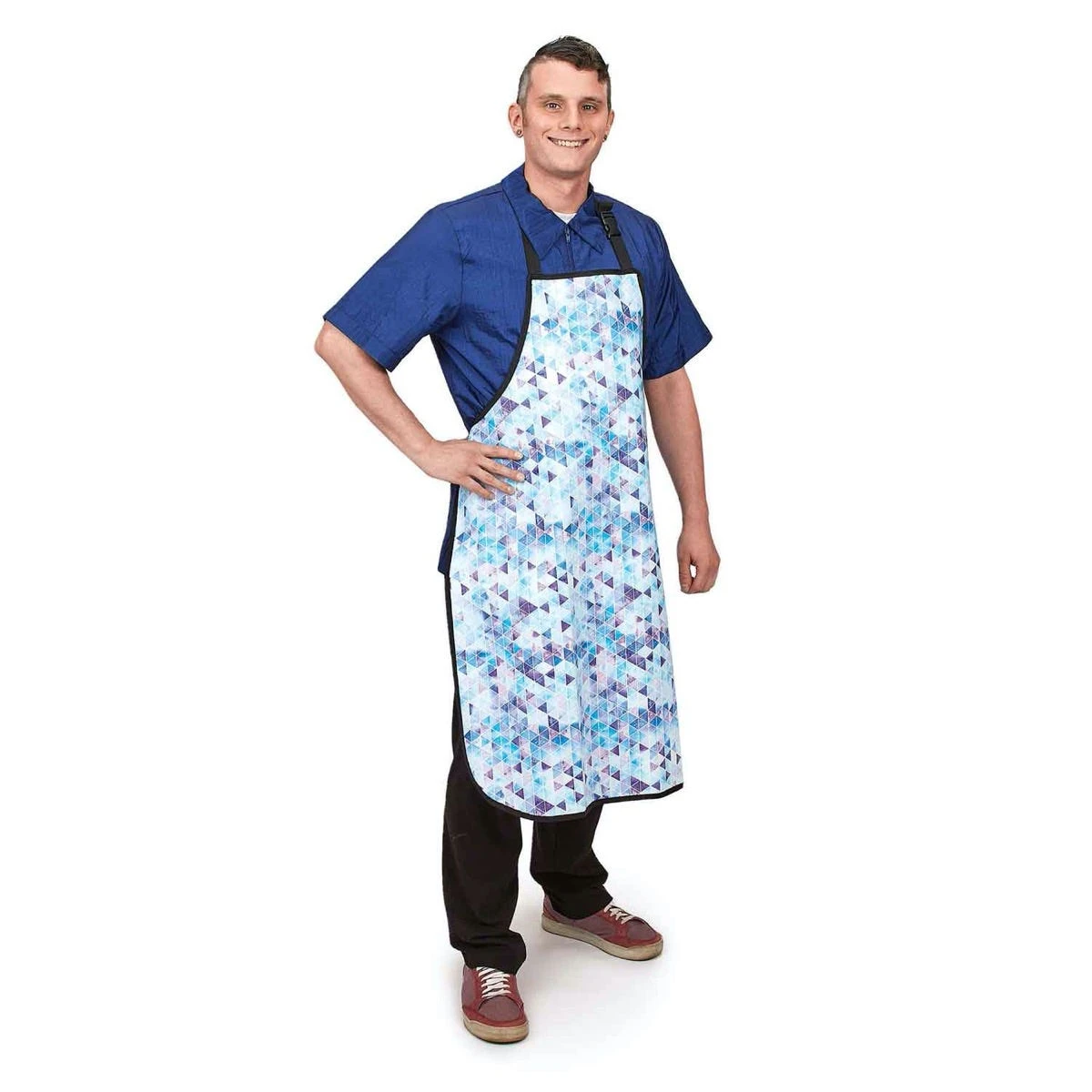 Top Performance® Blue Crystal Print Waterproof Grooming Apron protects you and your clothes against water and stains for grooming products. Durable PVC material. Features bright Blue Crystal Print, and an adjustable neck strap with slide release buckle and back ties to fit most sizes.